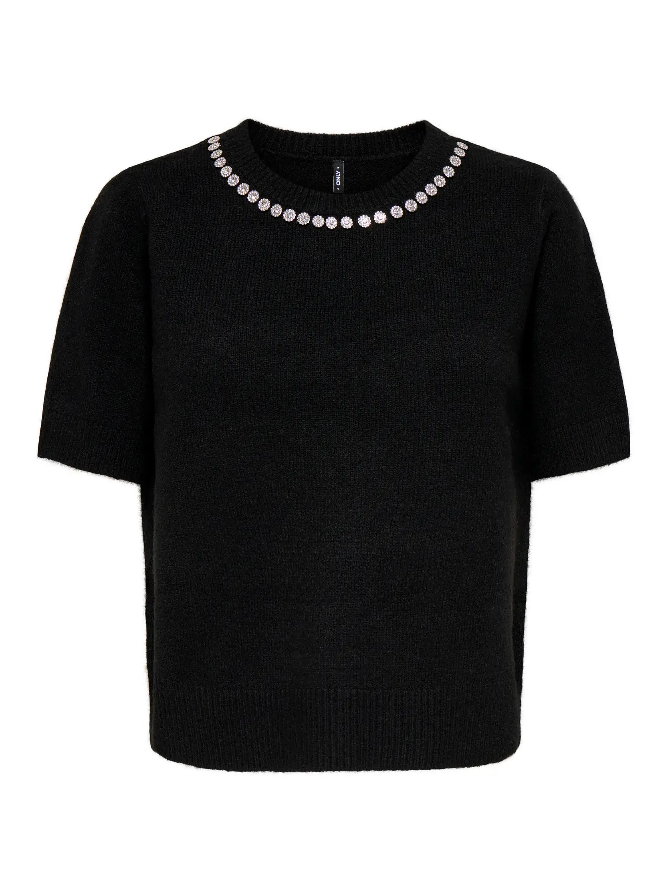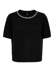 Top off your look with a timeless, feminine knit and add softness and warmth. – Product Type : Knitted pullover – Neck : Round Neck – Sleeve : Short sleeves – Extra details : Rhinestones – Fit : Regular Fit