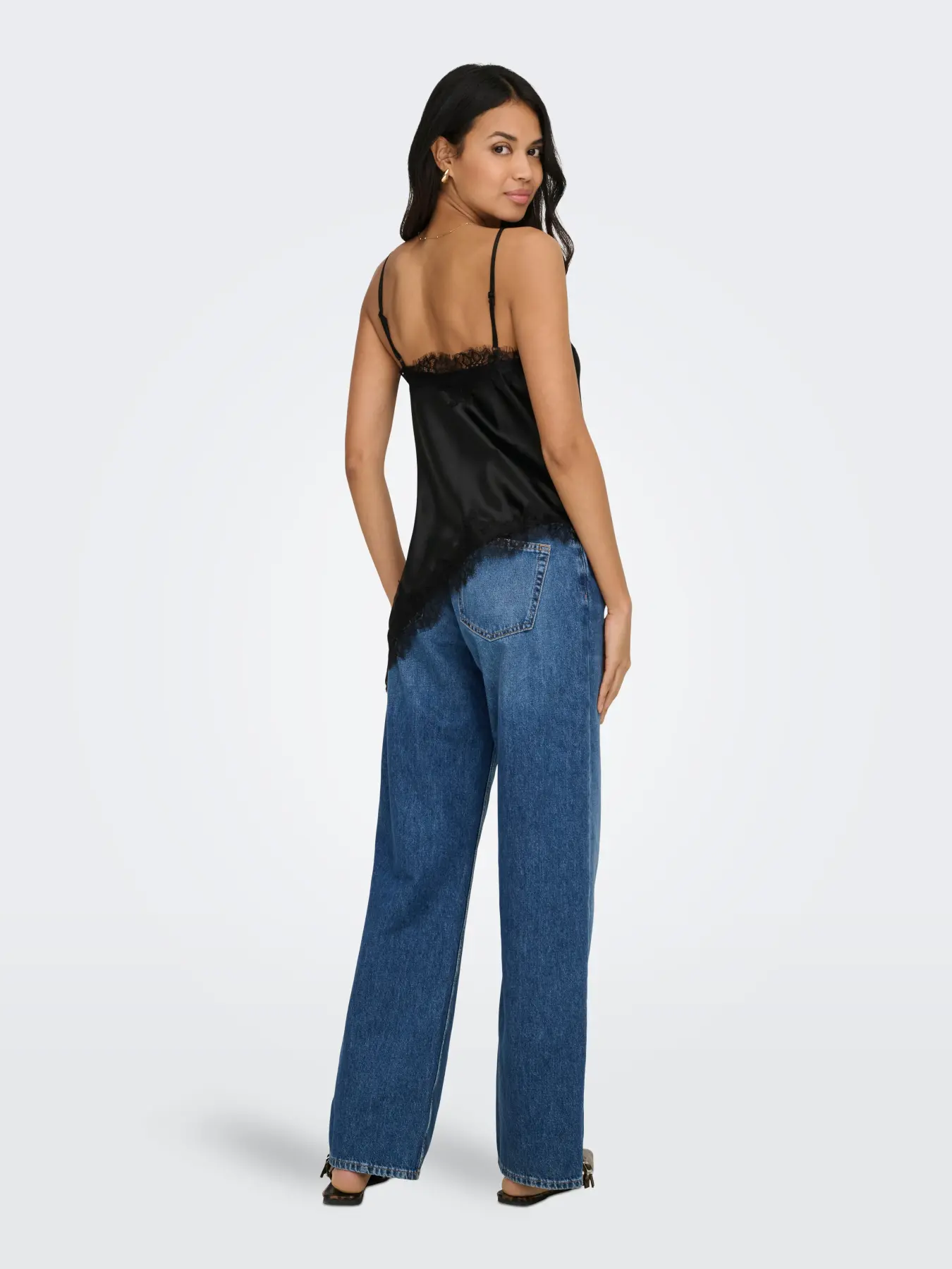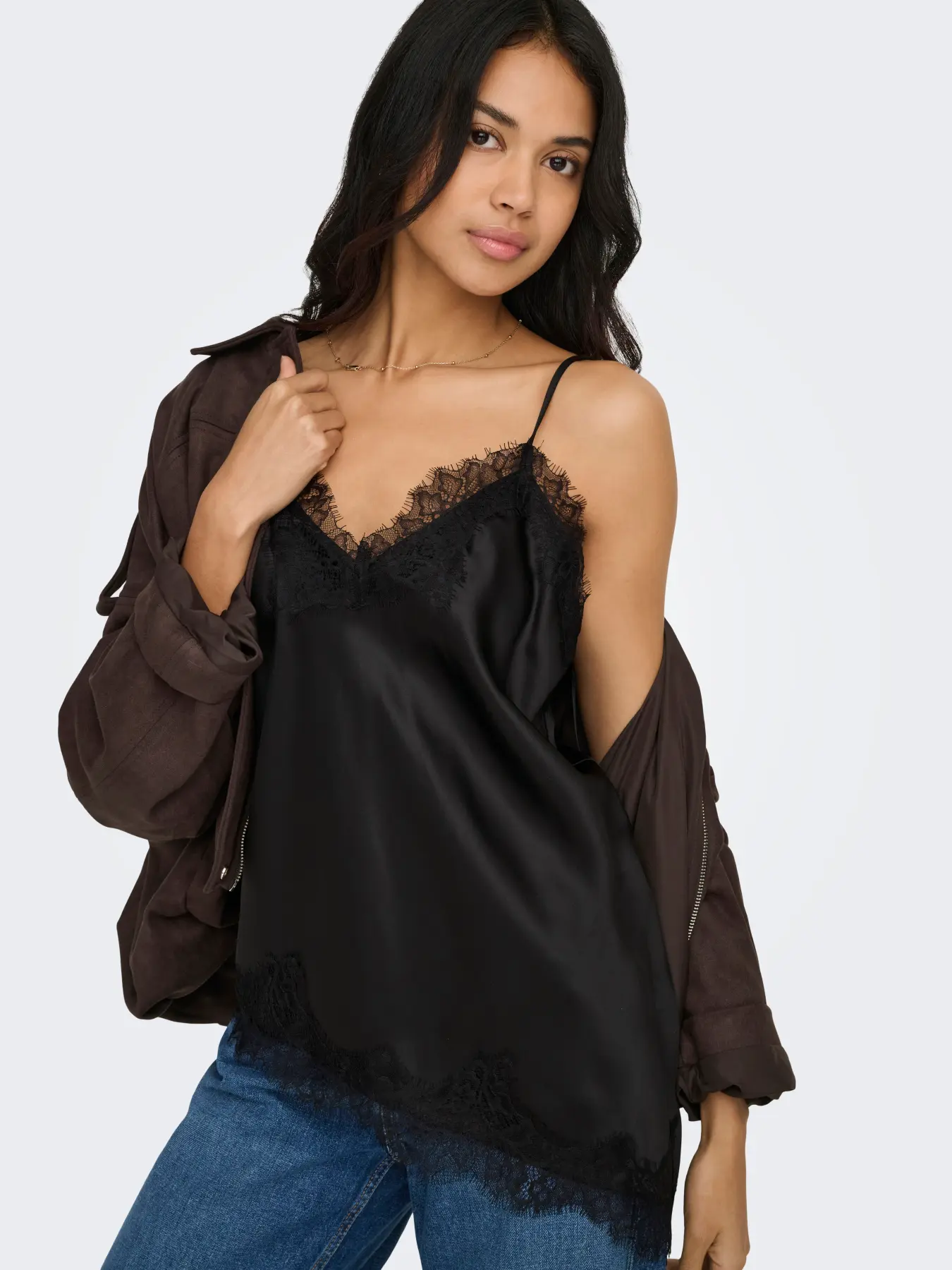 ONLY BELLA SATIN STRAP TOP IN BLACK