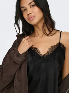 Change your everyday outfit in a second by adding a feminine top for a soft, clean expression. Woven fabrics are created by weaving together two or more yarns for a timeless look. – Product Type : Satin Camisole top – Neck : V-Neck – Sleeve : Sleeveless – Straps : Adjustable straps, Thin straps – Extra details : Lace detail – Fit : Standard Fit