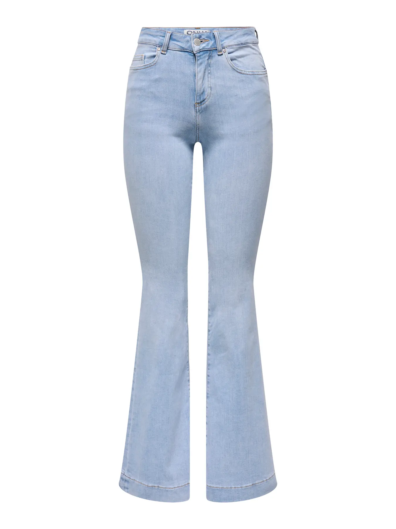 ONLY BLUSH MID RISE RETRO FLARE JEANS IN LIGHT BLUE DENIM
