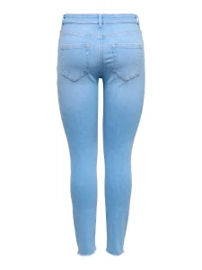ONLY BLUSH MID RISE SKINNY RAW ANKLE JEANS IN LIGHT BLUE DENIM