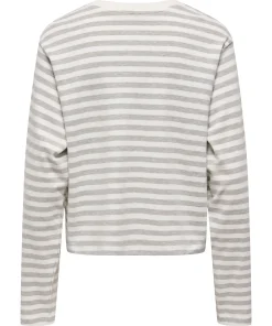 ONLY CARLINA TOP IN LIGHT GREY / CREAM STRIPE
