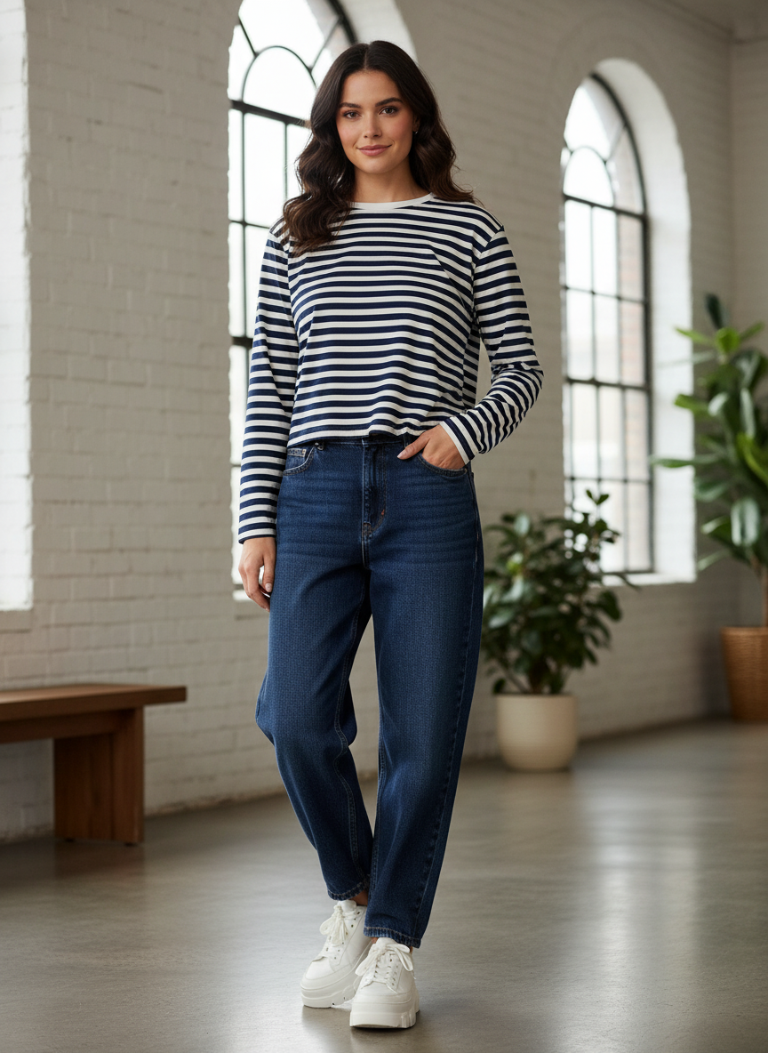 ONLY CARLINA TOP IN NAVY / CREAM STRIPE