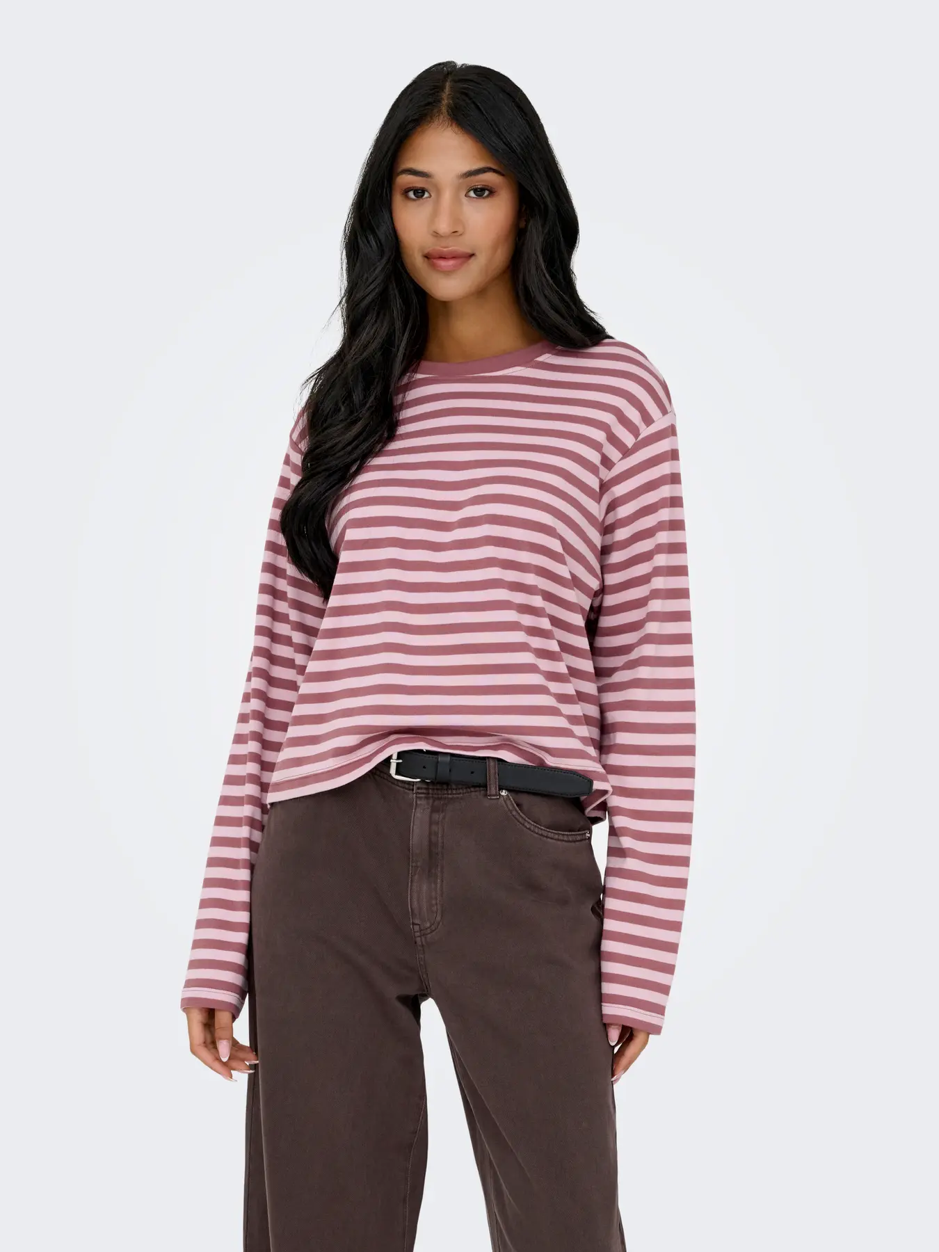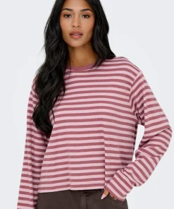 ONLY CARLINA TOP IN ROSE / MAROON STRIPE