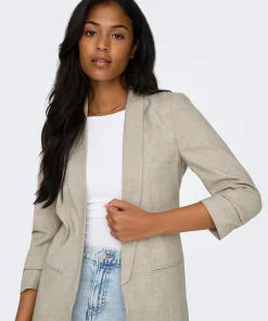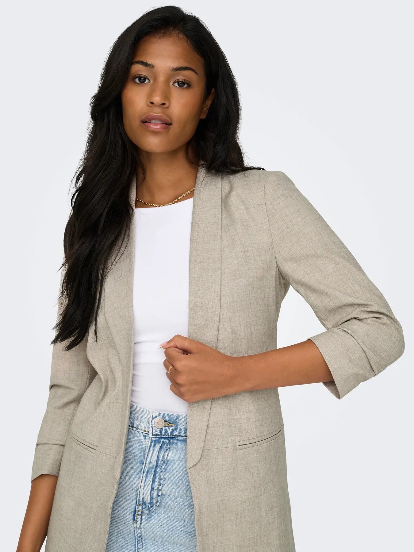 ONLY ELLY 3/4 SLEEVE TAILORED BLAZER IN WHITE PEPPER MELANGE