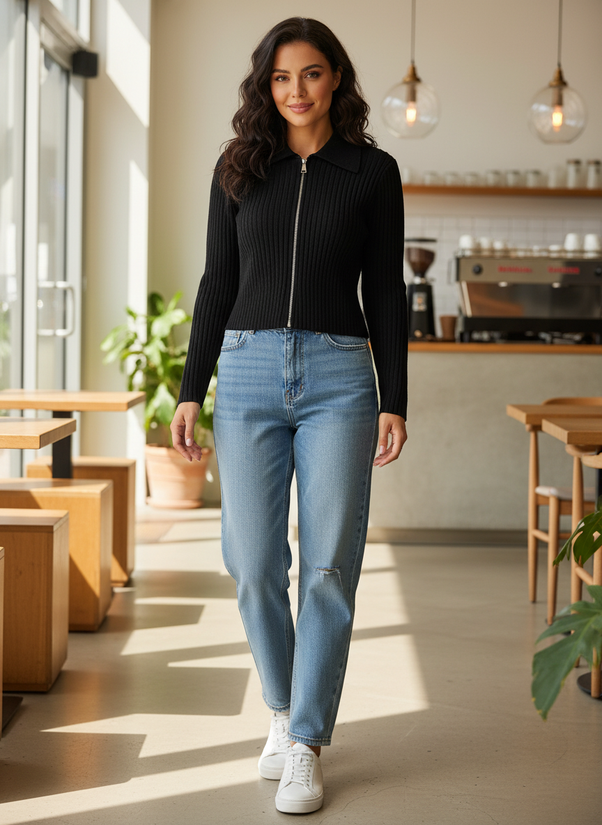 ONLY ELLY ZIP POLO CARDIGAN IN BLACK COLOUR