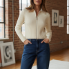 Complete your look with a knitted cardigan essential in any wardrobe and perfect for both winter days and summer evenings. Flat knit is a type of knitting characterised by its flexibility, comfort, and clean look. – Product Type : Cardigan – Neck : Polo – Sleeve : Long sleeves – Closing : Zip fastening – Fit : Regular Fit