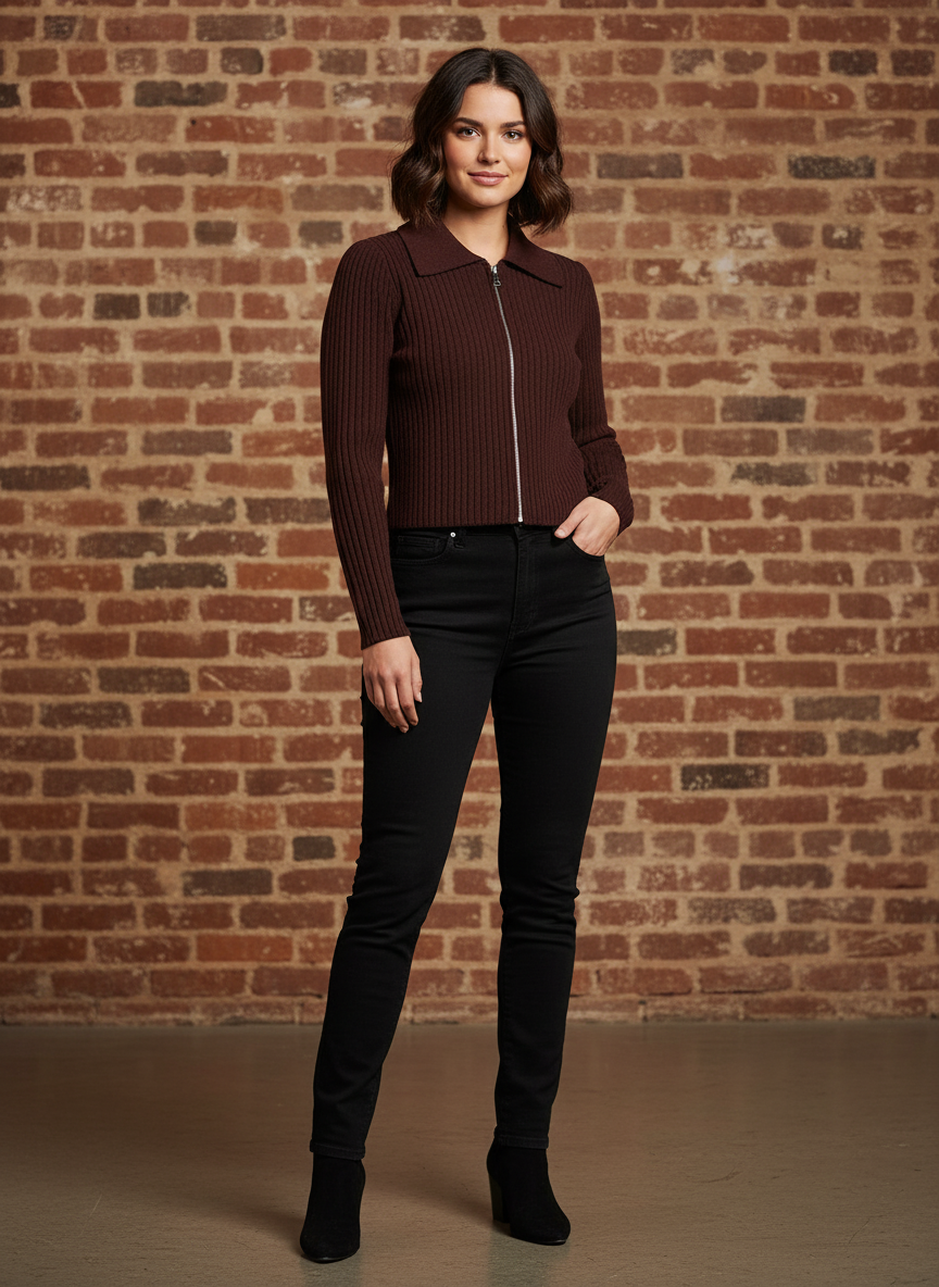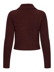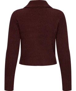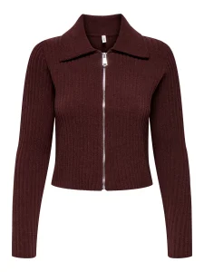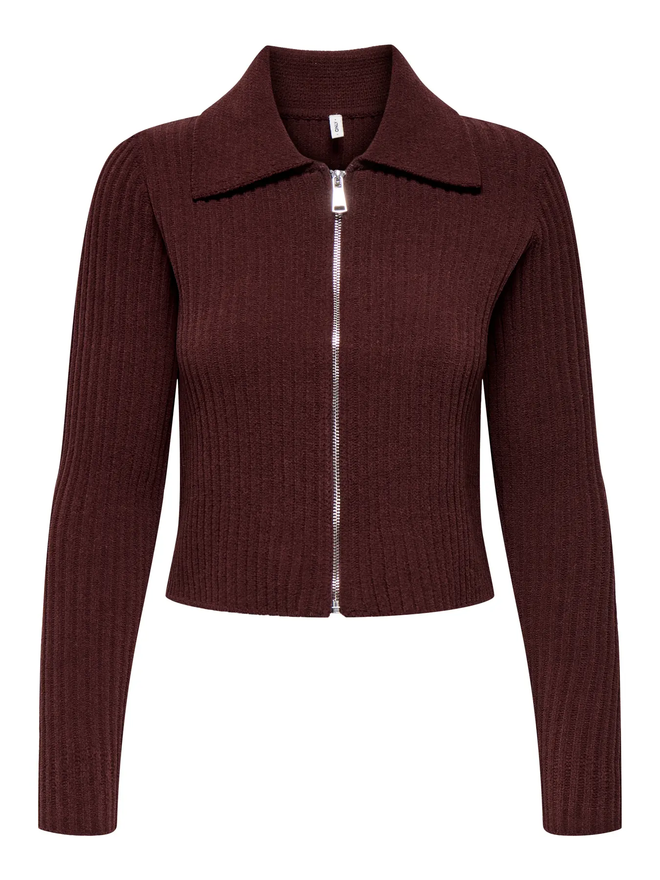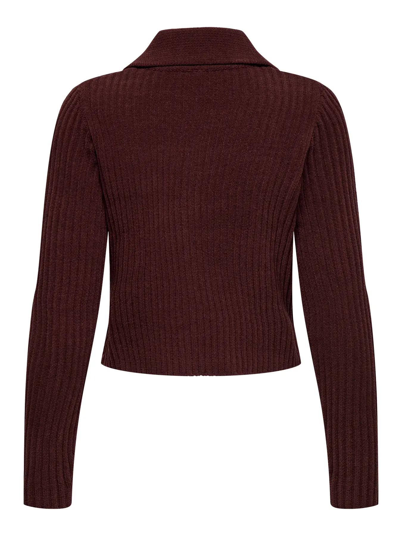 ONLY ELLY ZIP POLO CARDIGAN IN DECADENT CHOCOLATE COLOUR