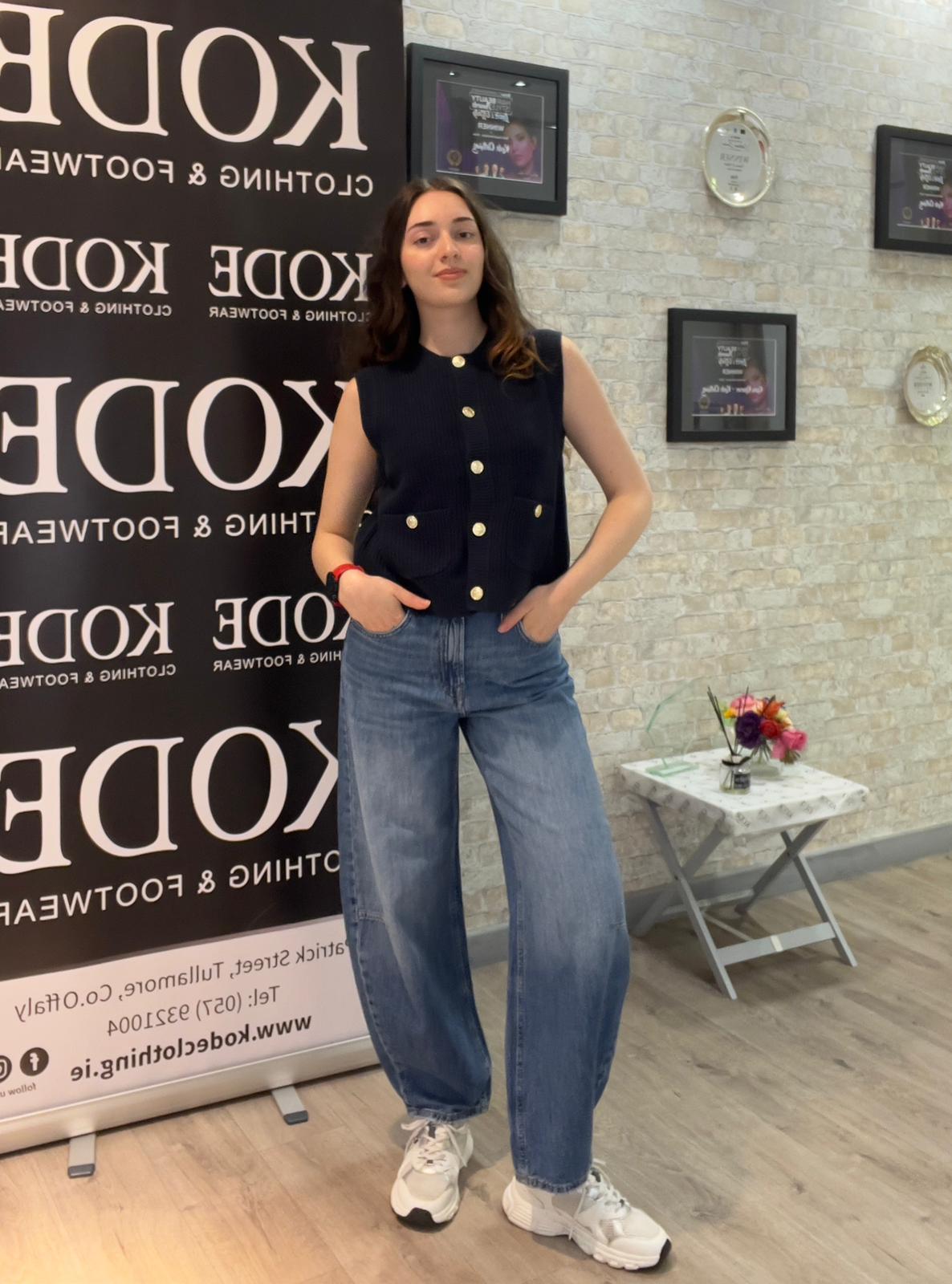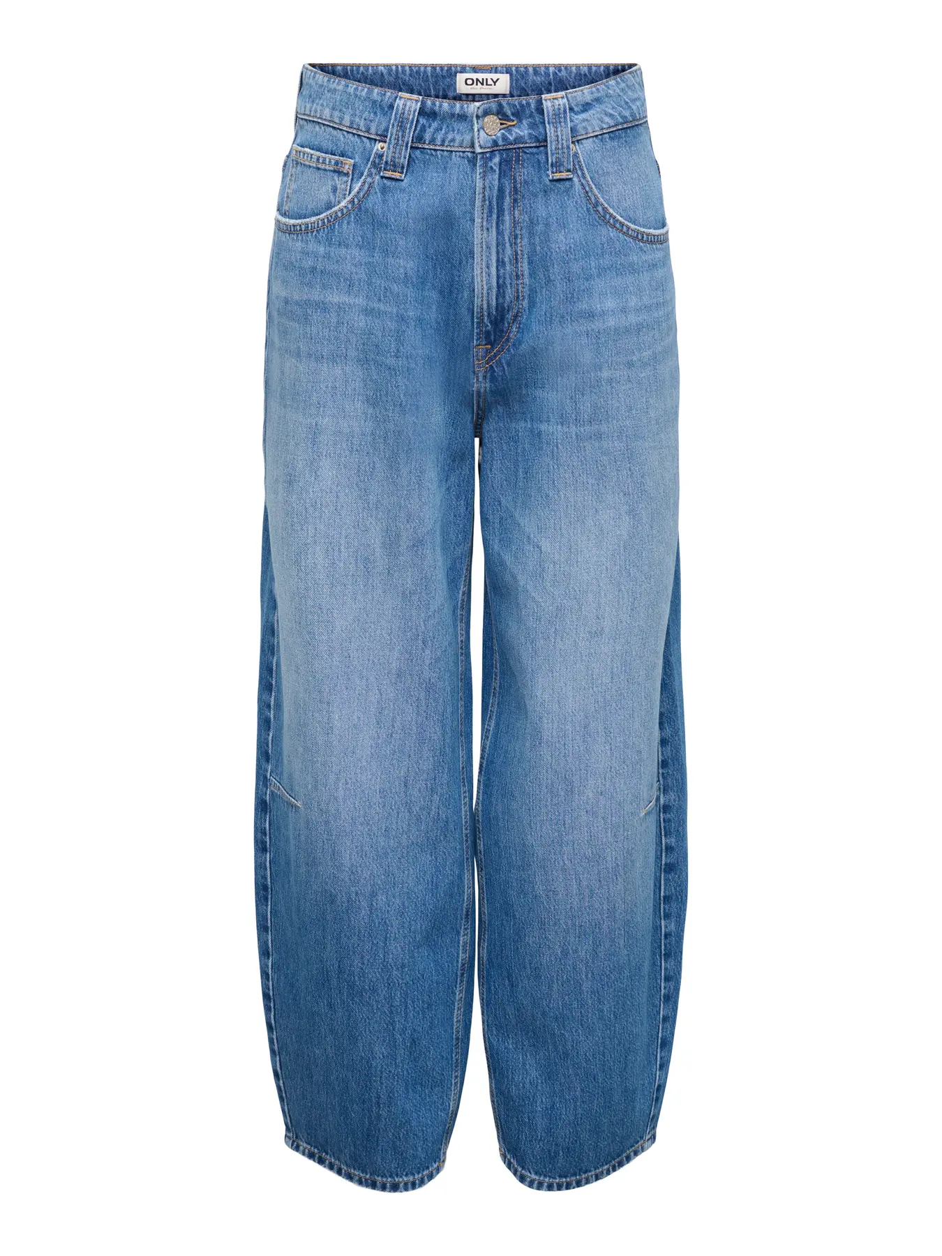 Nothing beats denim – the timeless trend belongs in any wardrobe and looks great with contrasting white items or matched with other denim styles for a fun, stylish look. – Product Type : Barrel jeans – Closing : Button and zip fastening – Pockets : Back pockets, Coin pocket, Front pockets – Waist : High waist – Length/Size : Ankle length – Extra details : Belt loops – Wash/Finish : Mid wash for a washed and worn-in denim look – Fit : Barrel Fit