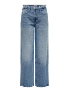 Find your new go-to item for both work and play with a pair of cool jeans in the perfect fit and colour. – Product Type : Wide-fit jeans – Closing : Zip fly fastening – Pockets : Back pockets, Front pockets – Waist : High waist – Extra details : Belt loops and rhinestone detail – Fit : This wide-leg style are designed with comfort in mind, with plenty of room from hip to ankle.