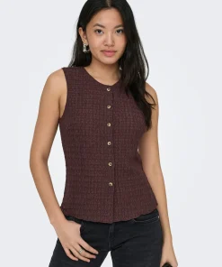 ONLY ILSE STRUCTURE VEST TOP IN DEEP MAHOGANY