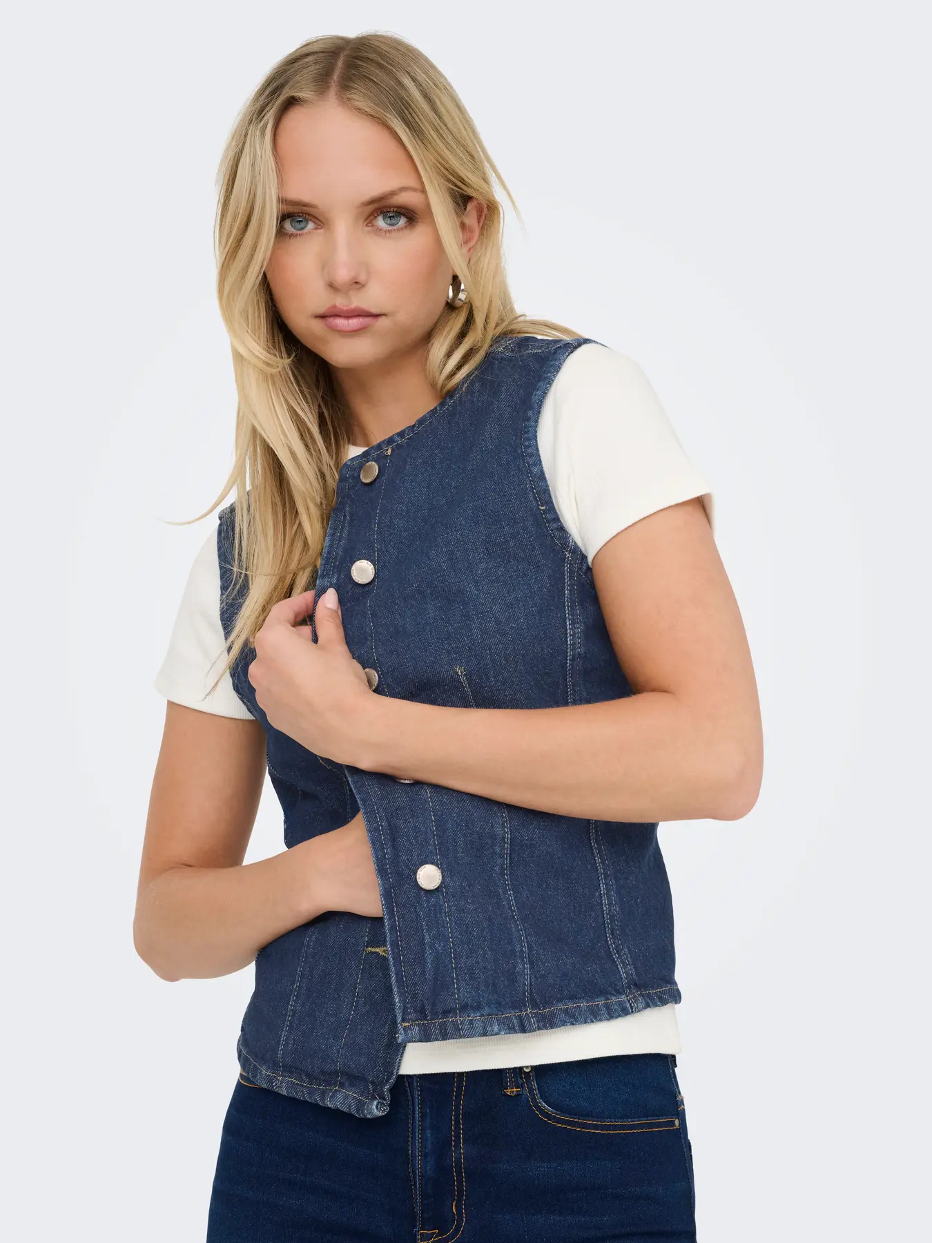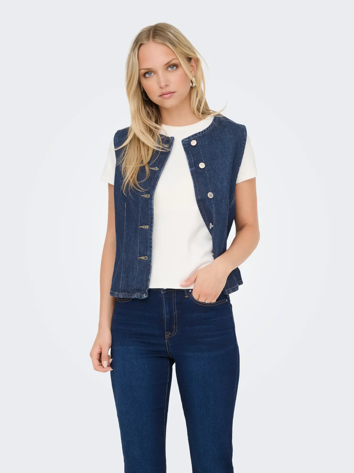 ONLY LAYA S/L FITTED DENIM WAISTCOAT