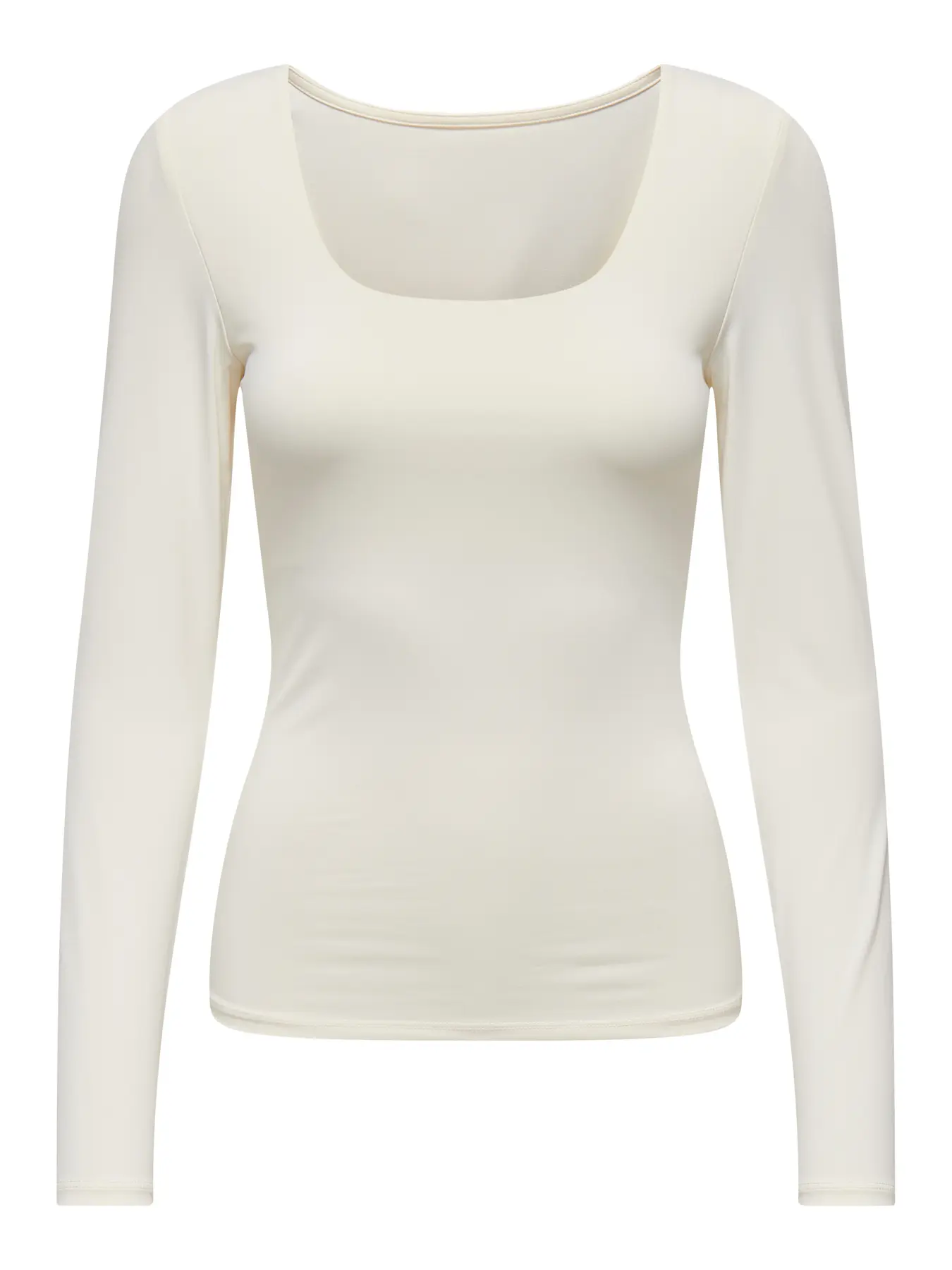 ONLY LEA L/S 2-WAY DEEP NECK TOP CREAM