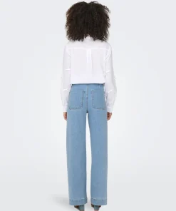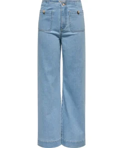 ONLY MADELINE HIGH RISE WIDE LEG JEANS IN LIGHT BLUE DENIM