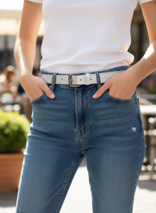 Give your wardrobe an upgrade with a functional and cool belt to complete any look. Polyurethane is a synthetic material with a subtle shine and smooth surface. Product – shiny finish jeans belt – Closing : Adjustable buckle fastening – Attachment comp : Polyester