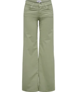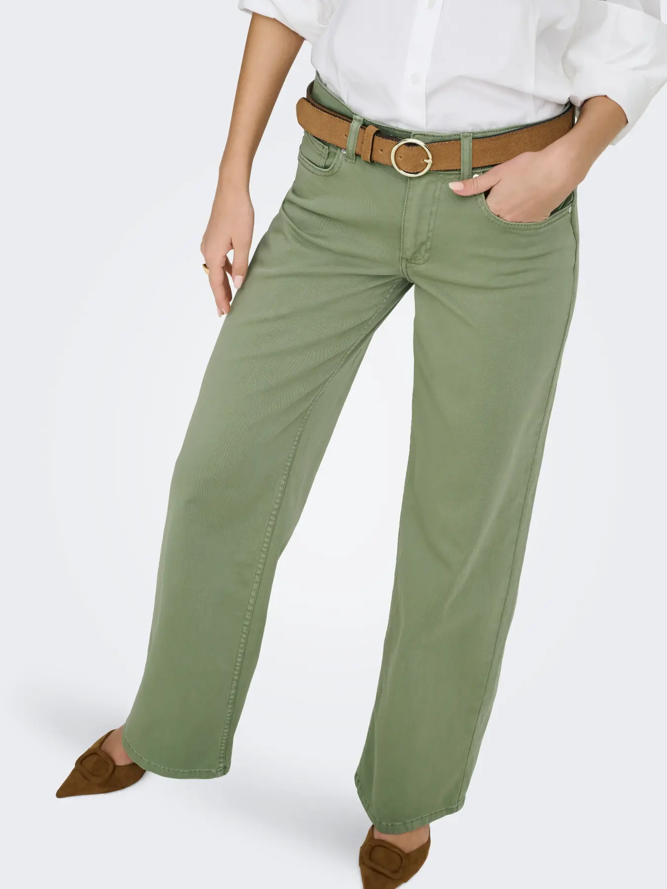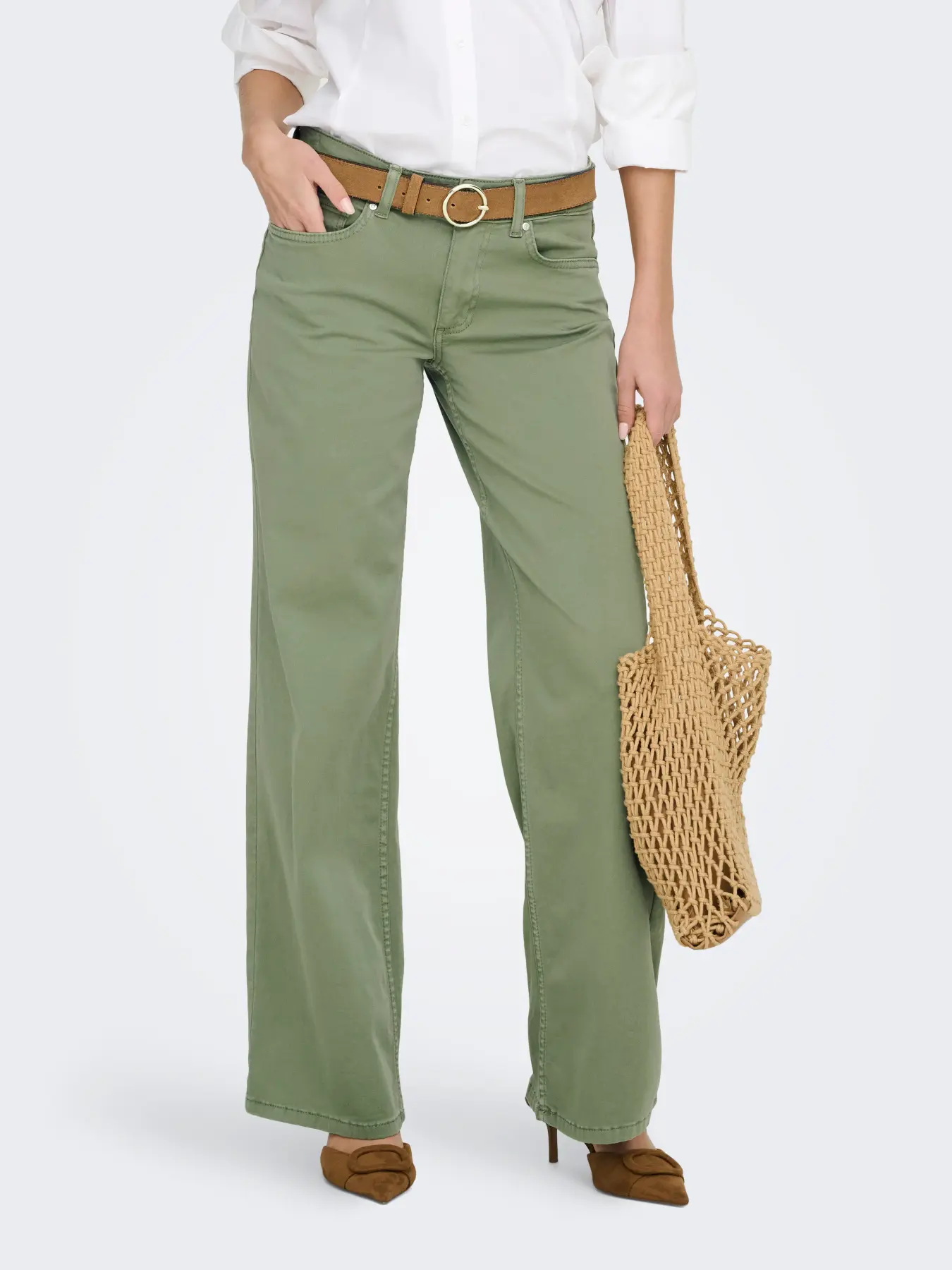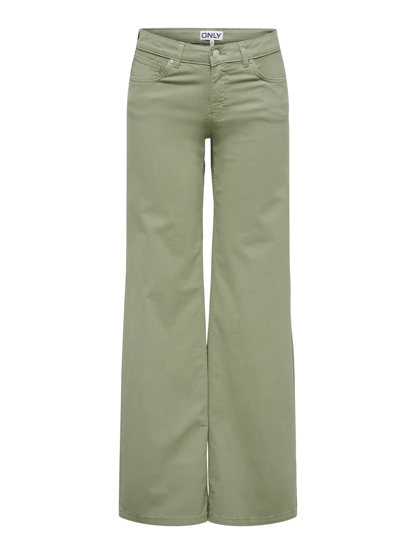 ONLY MADISON LOW RISE WIDE LEG TROUSERS IN OIL GREEN