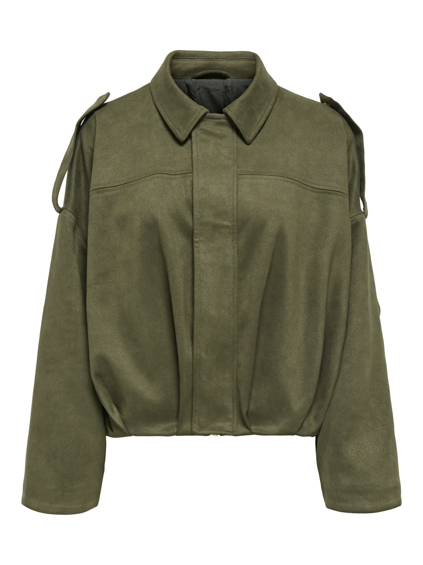 ONLY MOON-STINA FAUX SUEDE BOMBER JACKET IN GRAPE LEAF