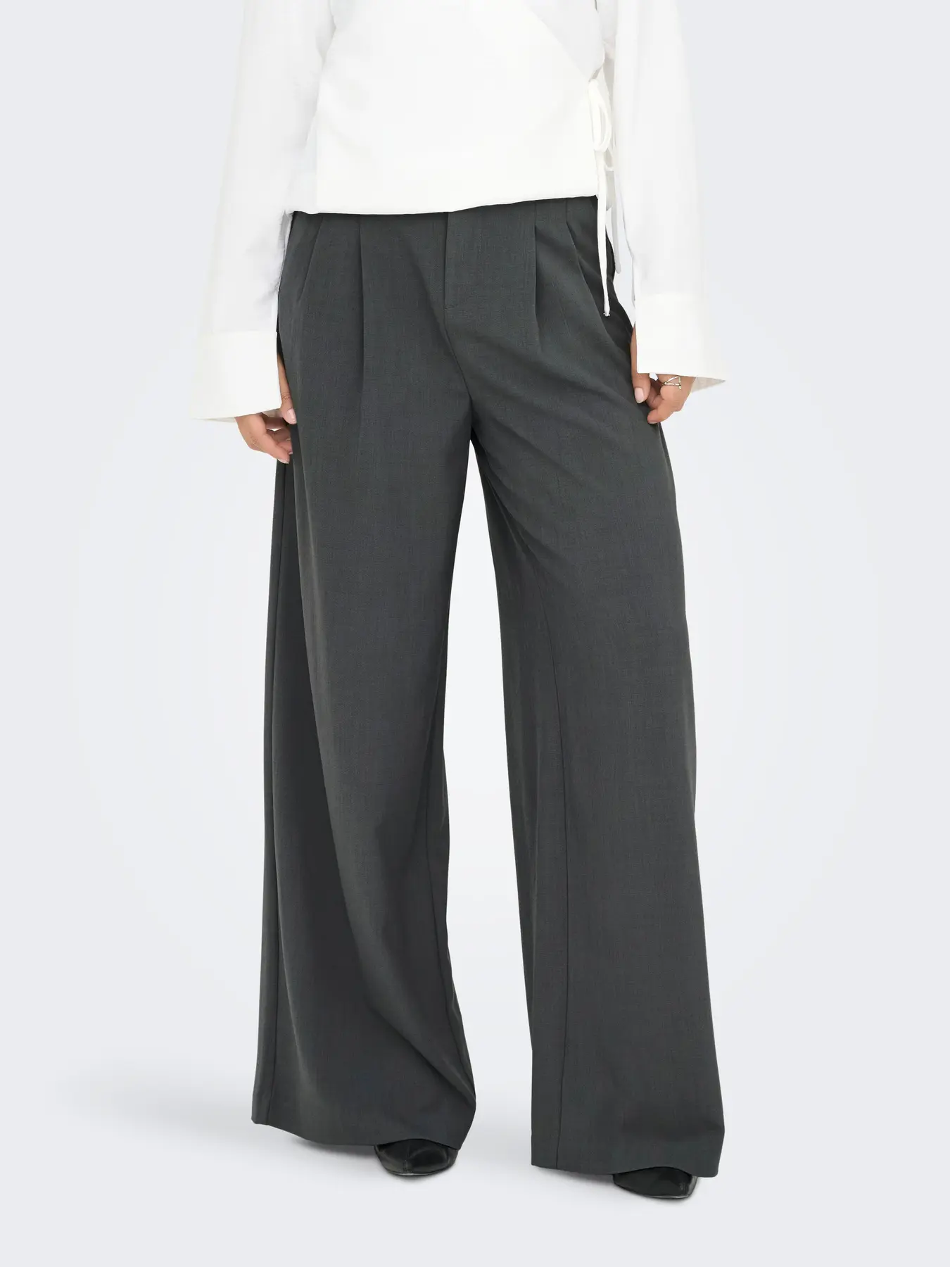 ONLY SVEA HIGH WAIST WIDE LEG TROUSERS IN DARK GREY