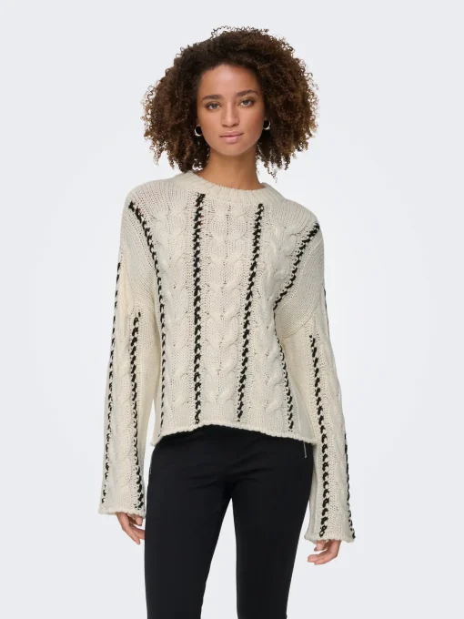 Stay warm and cosy with soft knitted styles, perfect for any occasion and season. Cable knit is a specific type of knit known for its braided design and timeless look. – Product Type : Knitted pullover – Neck : Round Neck – Sleeve : Long sleeves – Extra details : Stitching detail – Fit : Regular Fit