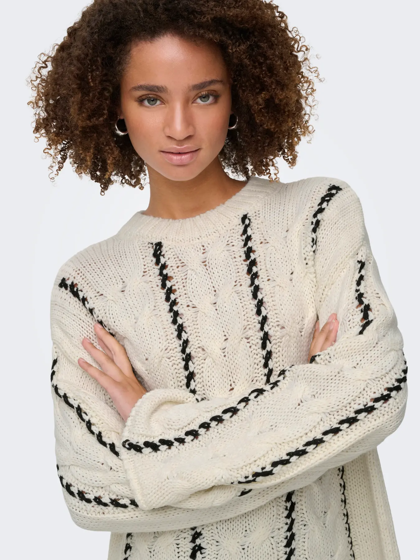 ONLY TESSA CABLE STITCH PULLOVER IN BIRCH MELANGE COLOUR