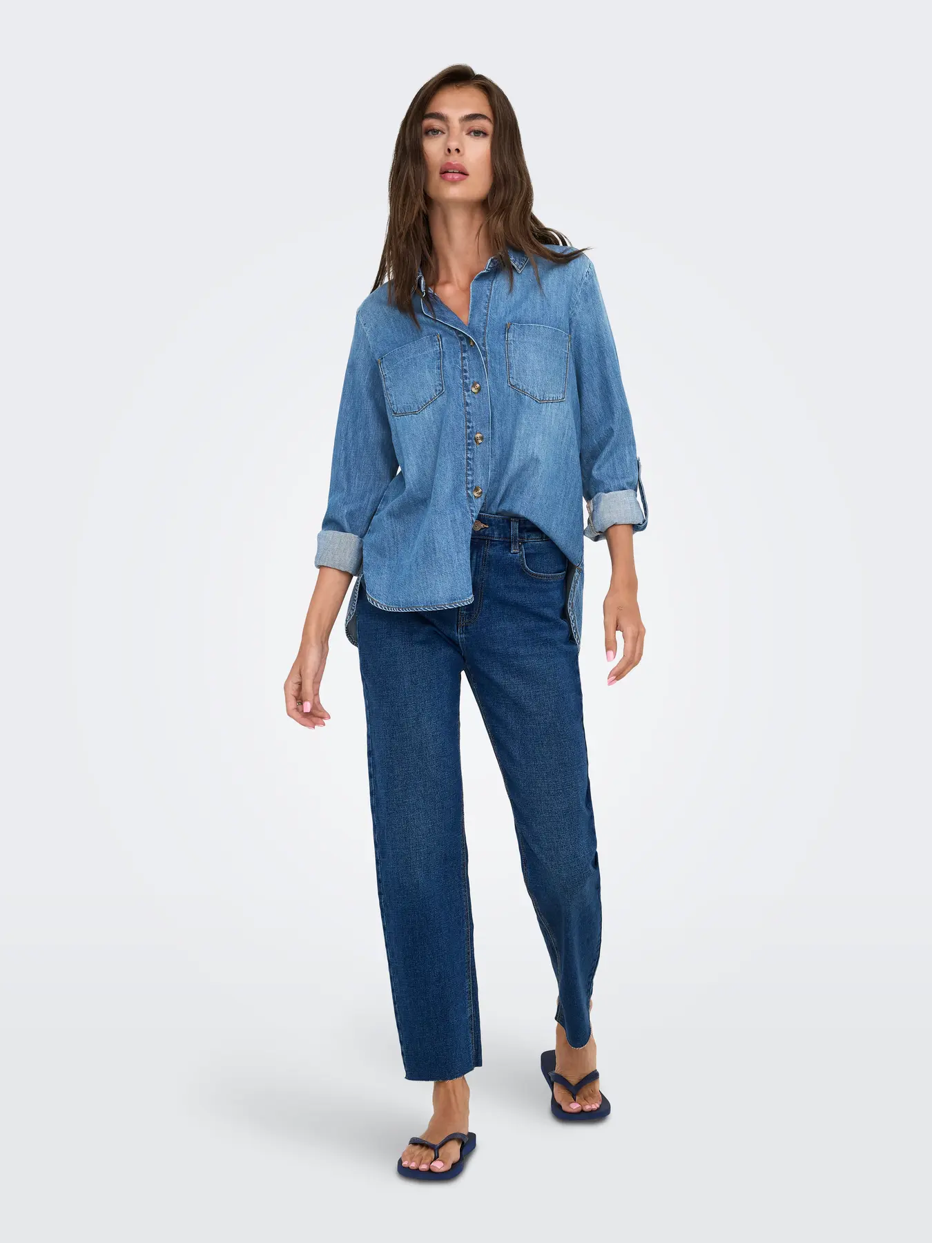Match your favourite trousers or skirt with a new denim shirt and create a timeless look, or, try out double denim for a fashionable and fresh outfit. – Product Type : Denim shirt – Neck : Shirt collar – Sleeve : Long sleeves – Cuffs : Fold-up cuffs – Closing : Button fastening – Pockets : Chest pockets – Fit : Standard Fit