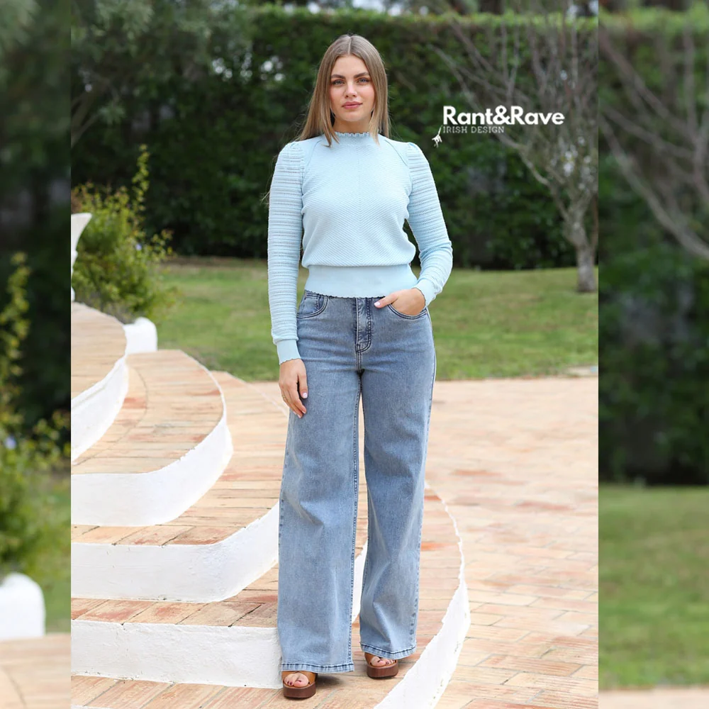 Introducing the Rant and Rave Simone Wide Leg JeanS in Ice Blue, a standout piece for your denim collection. These wide-leg jeans feature a refreshing ice blue wash that exudes summer vibes. With a flattering high-rise waist and a relaxed fit through the legs, the Simone Wide Leg Jean offers both style and comfort. Pair them with a tucked-in blouse or a fitted top for a chic and effortless look. Whether you’re strolling on the beach or exploring the city, embrace casual sophistication with the Rant and Rave Simone Wide Leg Jean in Ice Blue.