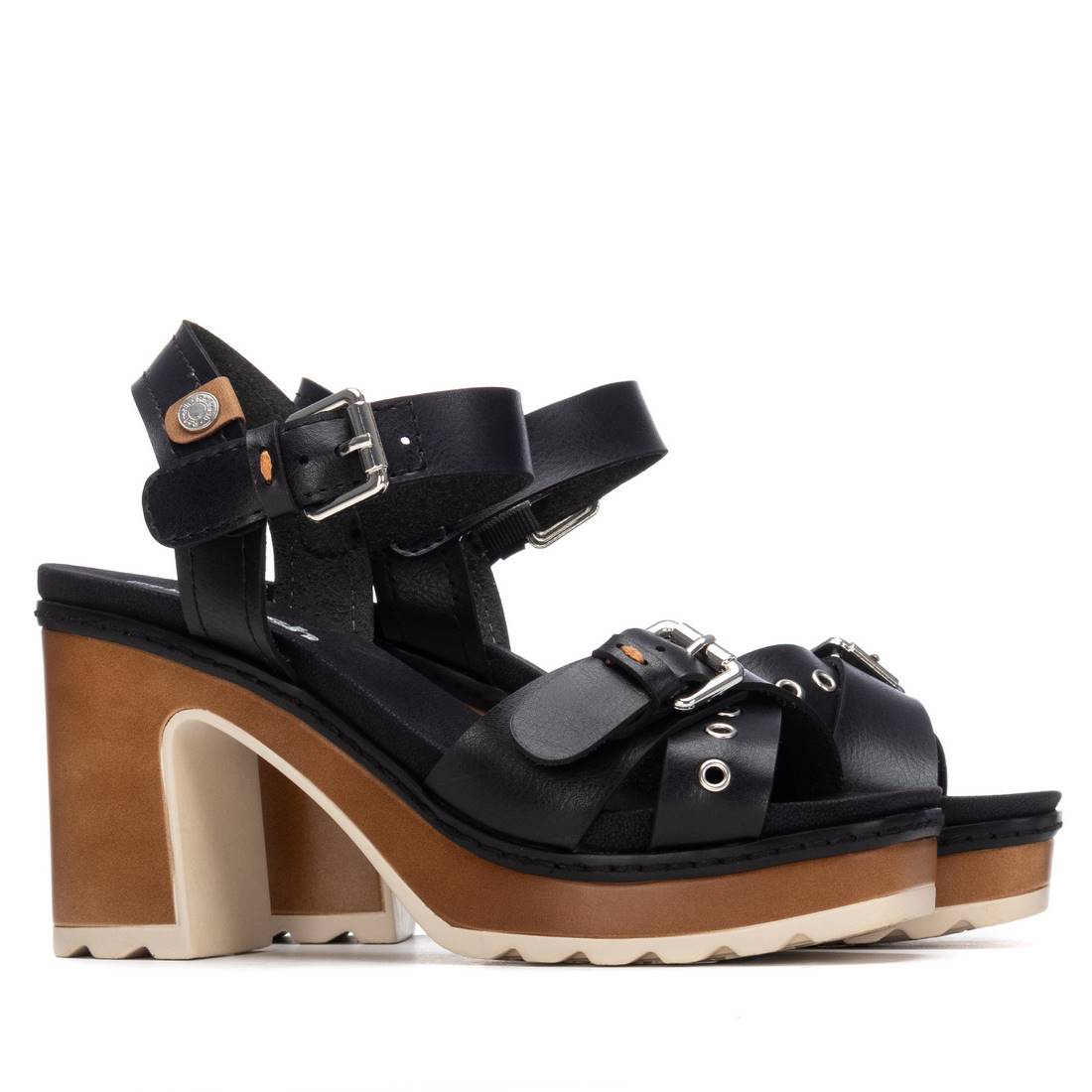 Women’s sandal from Refresh. Made of a leather-like material. Features a double-strap design with a buckle closure. A back ankle strap with a buckle allows for a secure fit. Comfortable insole with a rubber heel and platform sole for added comfort. This style has received vegan certification from PETA (Animal Rights Organization).