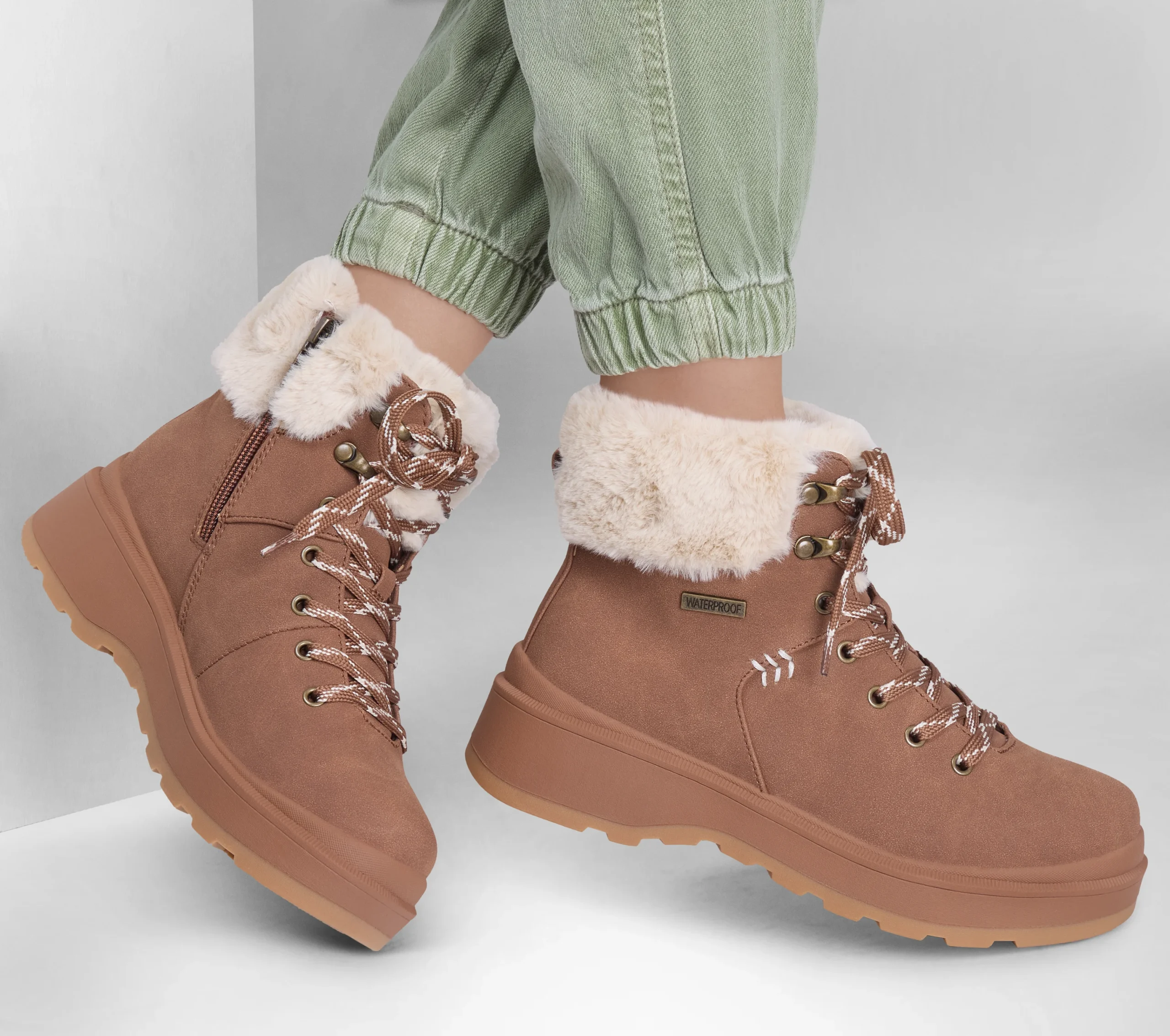 Stay warm and cozy this season in Skechers Park City. This lace-up fashion hiker boots features a synthetic suede upper with a faux-fur trim and lining, Skechers Memory Foam™ insole and an anti-slip traction outsole.