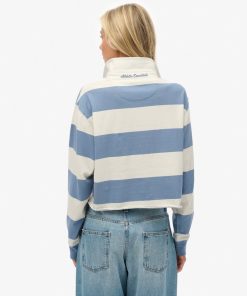SUPERDRY ATHLETIC CROPPED STRIPE RUGBY TOP BLUE / ECRU