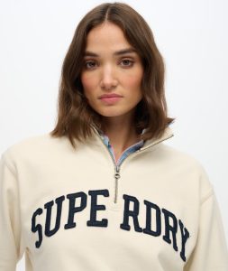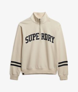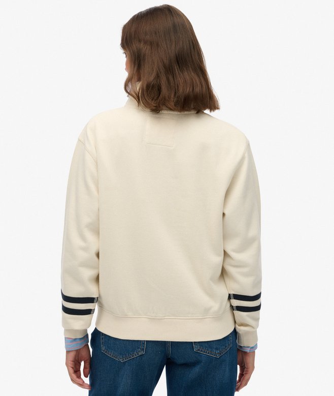 SUPERDRY ATHLETIC APPLIQUE HALF ZIP SWEAT TOP IN OFF WHITE / NAVY