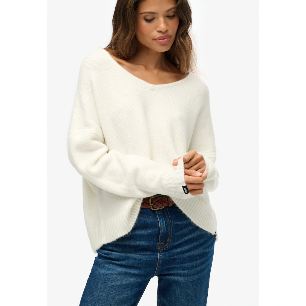 SUPERDRY BRUSHED VNECK JUMPER WHITE