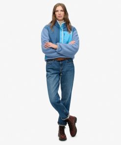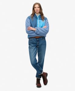 SUPERDRY COLOURBLOCK FLEECE PULLOVER IN TIDAL BLUE