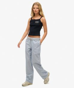 SUPERDRY COTTON STRIPE ELASTIC TROUSERS IN AZURE BLUE STRIPE
