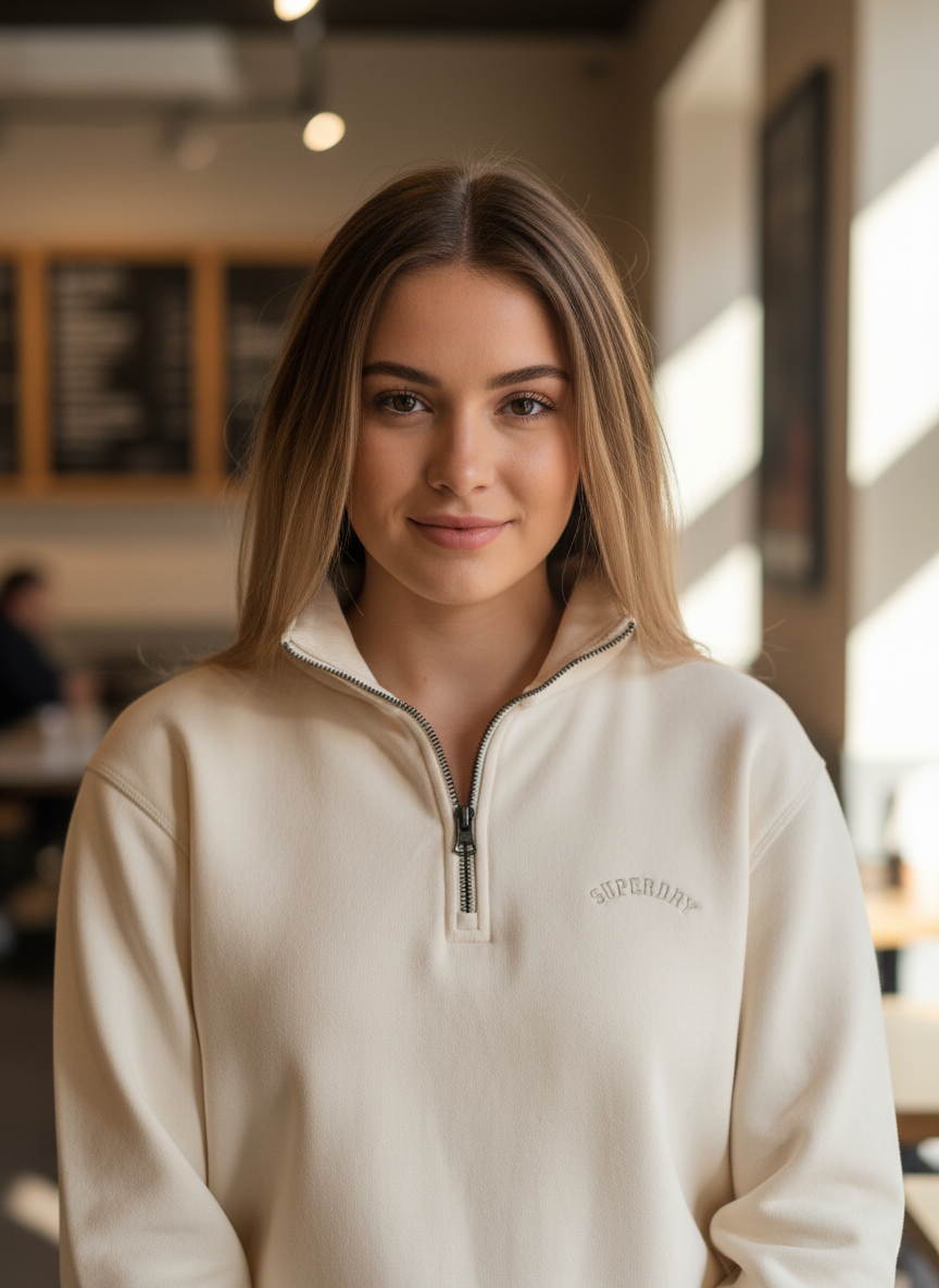 SUPERDRY ESSENTIAL LOGO HALF ZIP IN DESERT BONE
