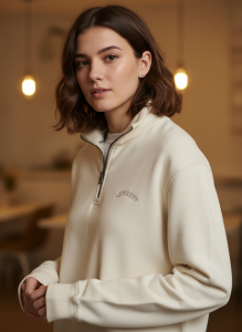 Henley collar design with zip fastening