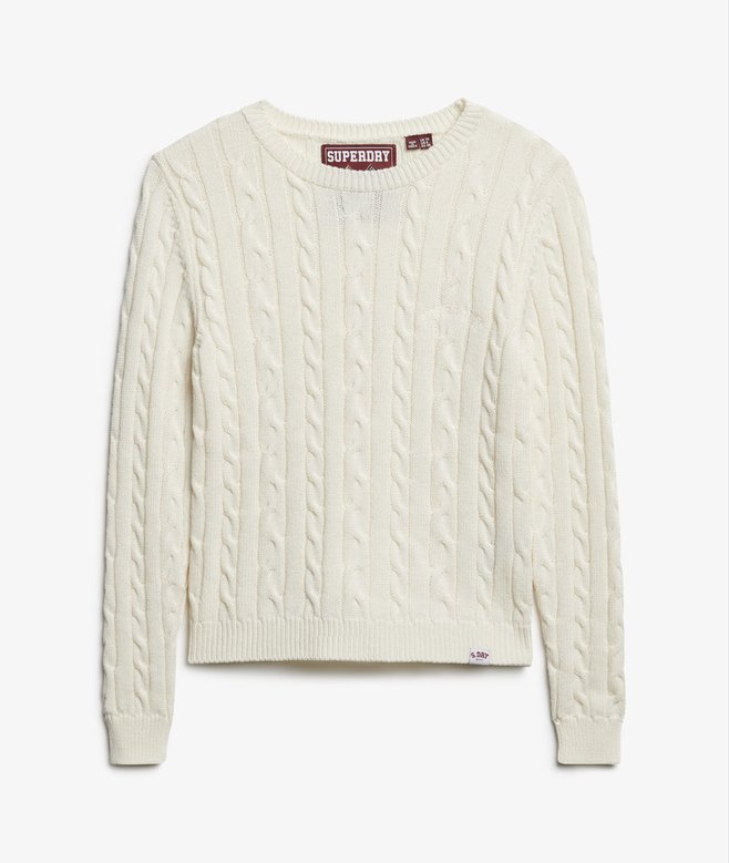 SUPERDRY ESSENTIALS SLIM CABLEKNIT JUMPER IN ECRU COLOUR