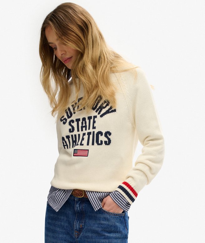 SUPERDRY SLOUCHY GRAPHIC KNIT CREAM
