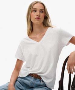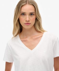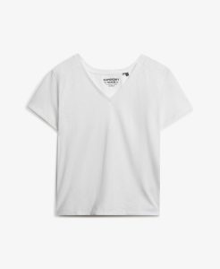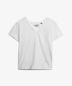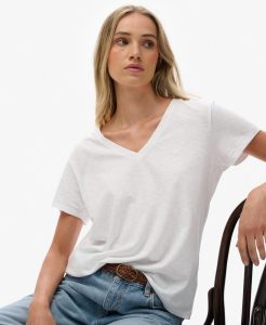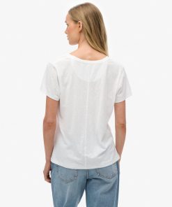 SUPERDRY STUDIOS SLUB EMBROIDERED V-NECK TEE IN WHITE