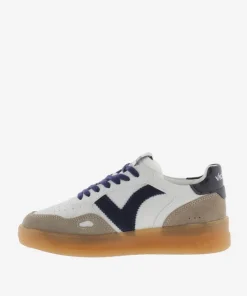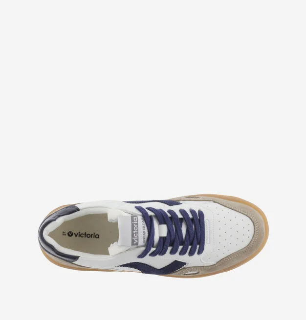White unisex sports sneakers made of leather-effect material and suede pieces. Colored details on the lateral V and heel tab with the brand logo, matching the laces. Window detail on the side. Caramel-colored 3.5 cm sole. They include a removable padded insole for added comfort.