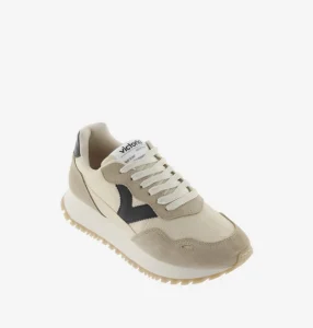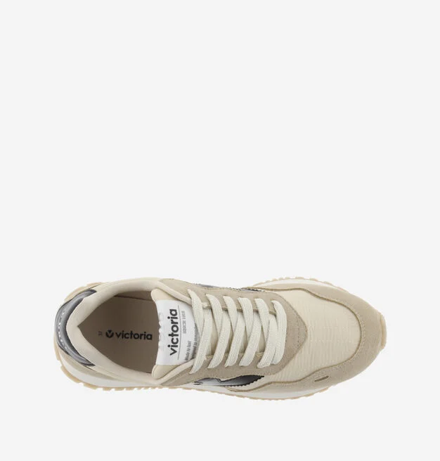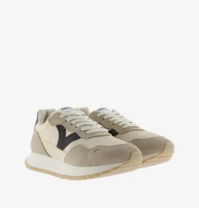Trainers for women made from nylon combined with tone-on-tone suede and synthetic pieces. Side V and heel tab with the brand logo in contrasting white and black leather-effect. Rubber tread with embossed non-slip relief for better grip.