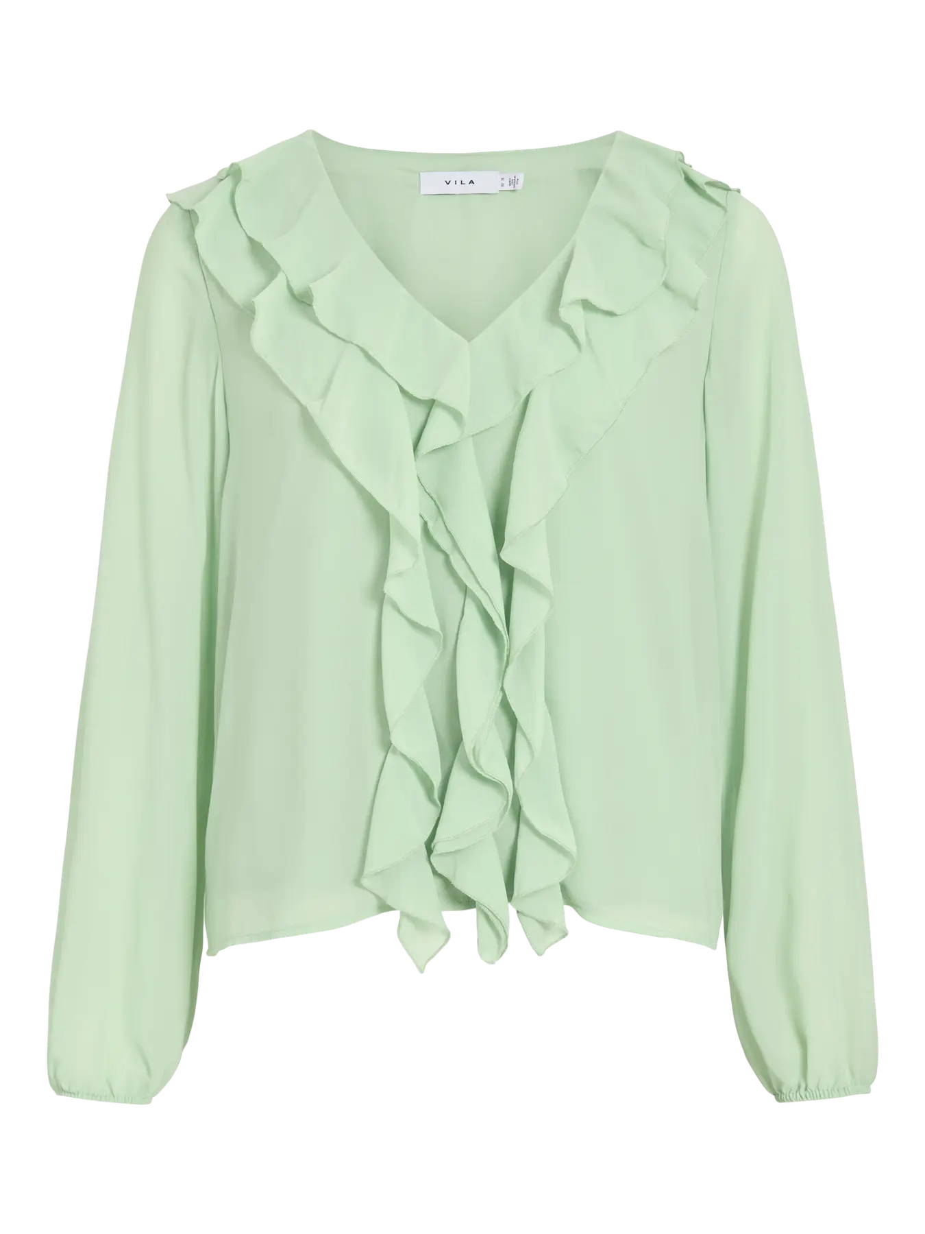 VILA ANE FRILL BLOUSE IN SMOKE GREEN