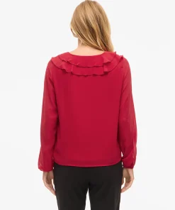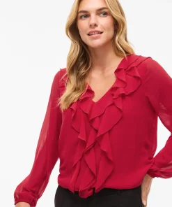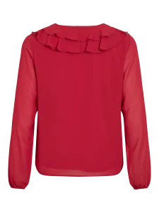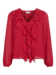 VILA ANE V-NECK FRILL BLOUSE IN JESTER RED