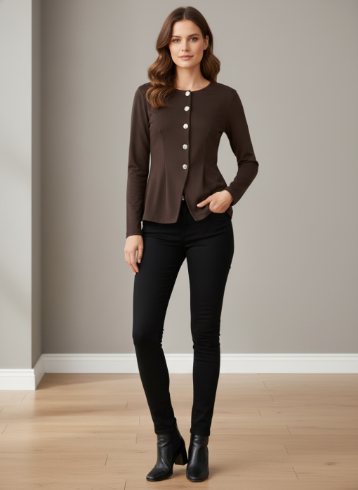VILA CILLE LS BUTTON TOP COFFEE