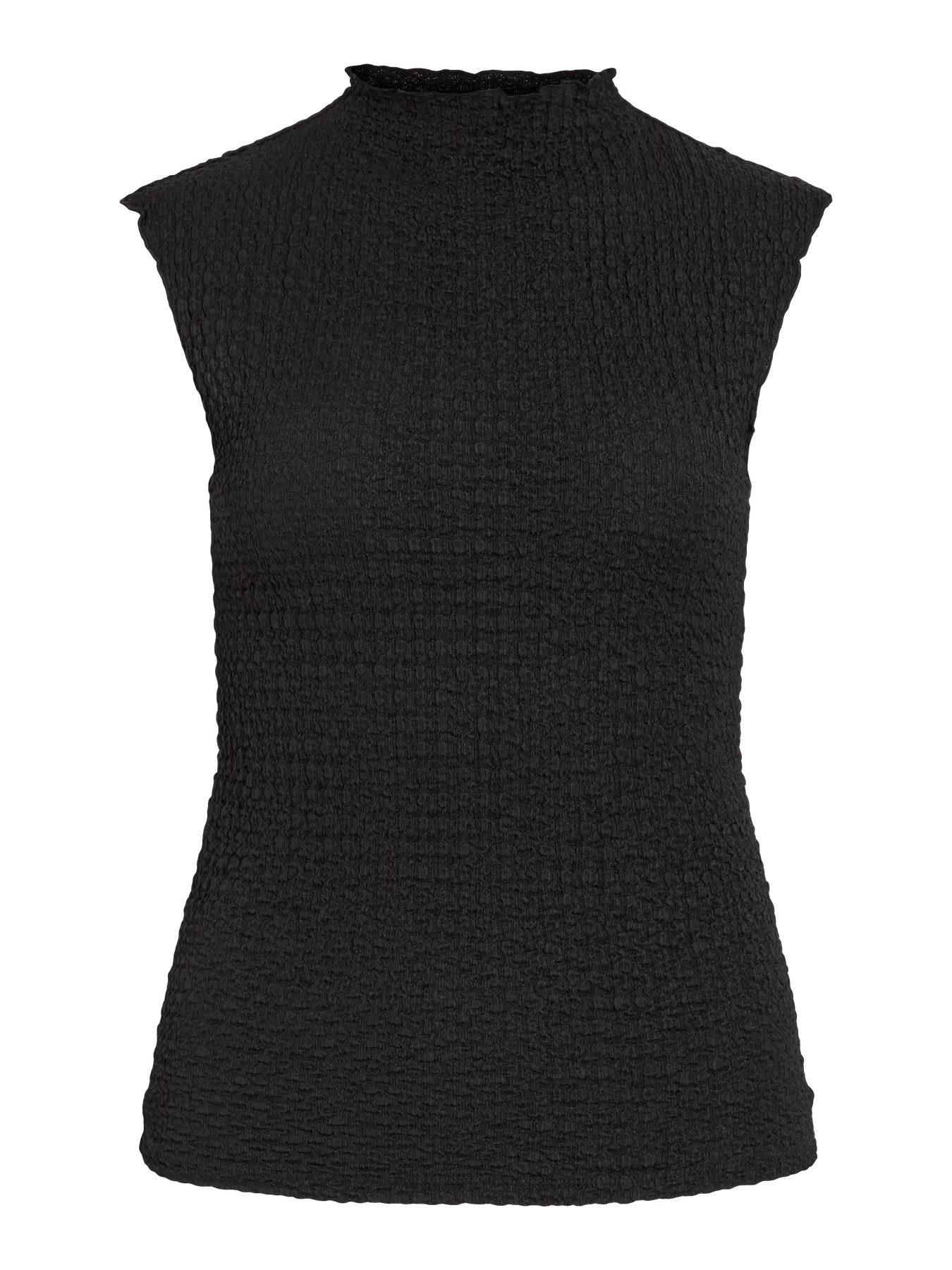 • Textured sleeveless top • High neck • Lettuce trim • Regular fit