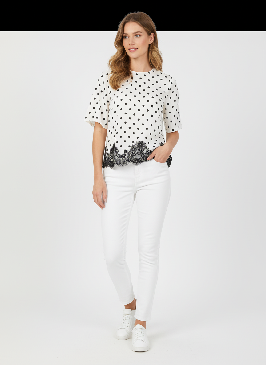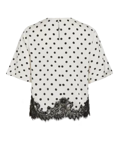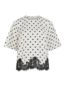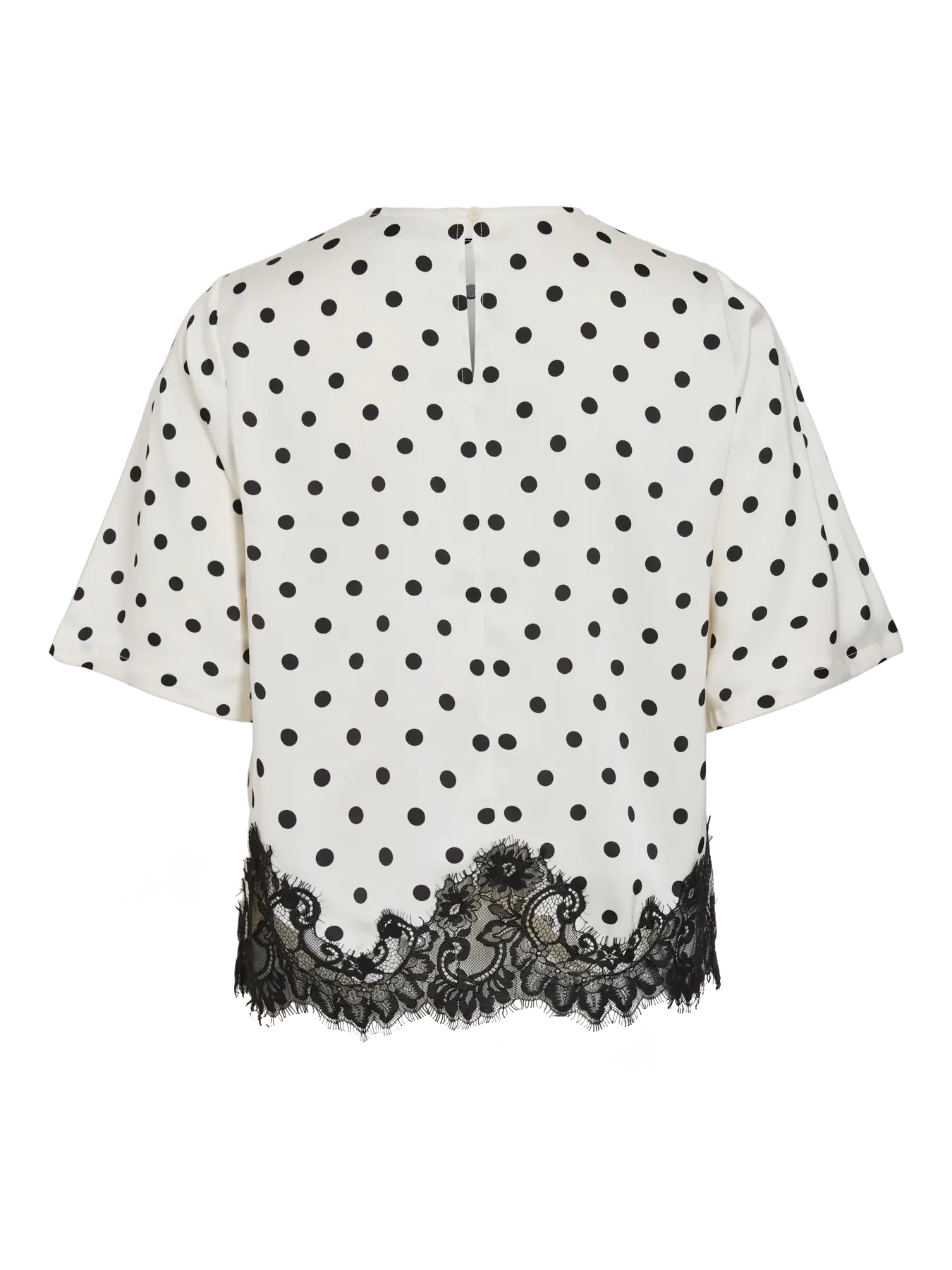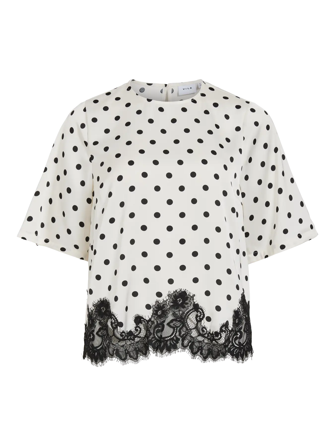 VILA DOTA 2/4 LACE TOP IN CREAM / BLACK POLKA DOT