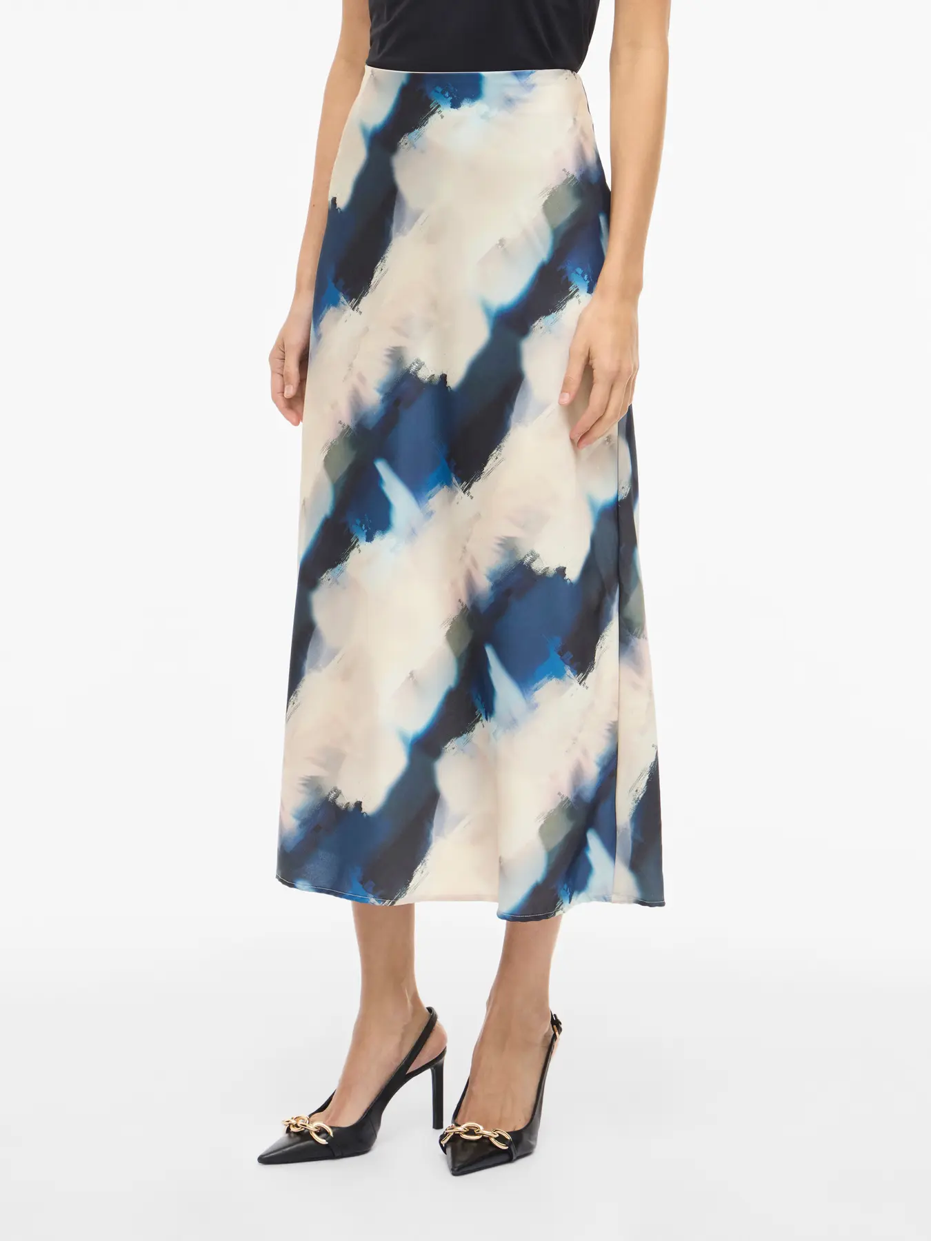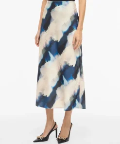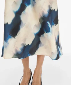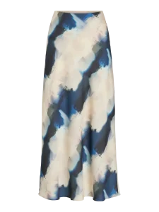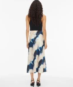 VILA ELLETTE BEIGE SATIN SKIRT IN NAVY/GREEN PRINT