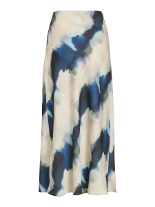 VILA ELLETTE BEIGE SATIN SKIRT IN NAVY/GREEN PRINT
