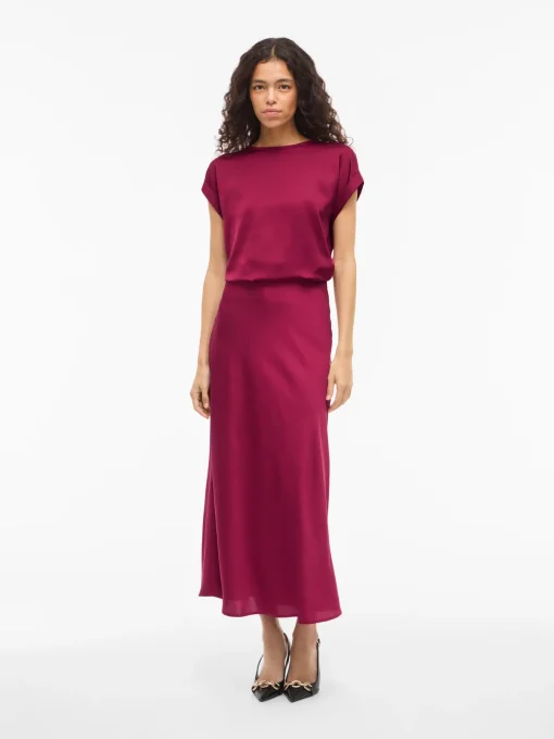 VILA ELLETTE HIGH WAIST SATIN MIDI SKIRT