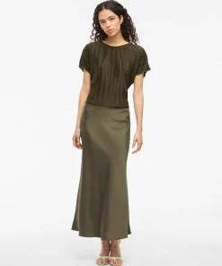 VILA ELLETTE MIDI SKIRT DUSTY OLIVE