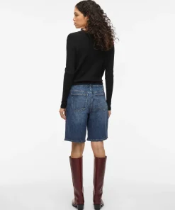 VILA JAF REGURAL WAIST BERMUDA SHORTS MEDIUM BLUE DENIM